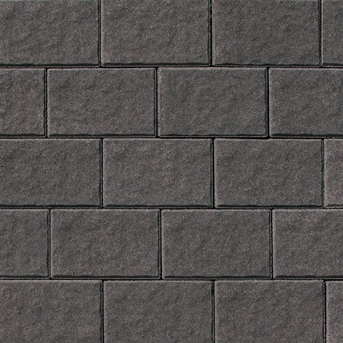 A universal, oversized brick shape with a textured riven surface. Slightly chamfered edges. Use as a field paver or as a border. Stocked in Raven with additional colors available to order.